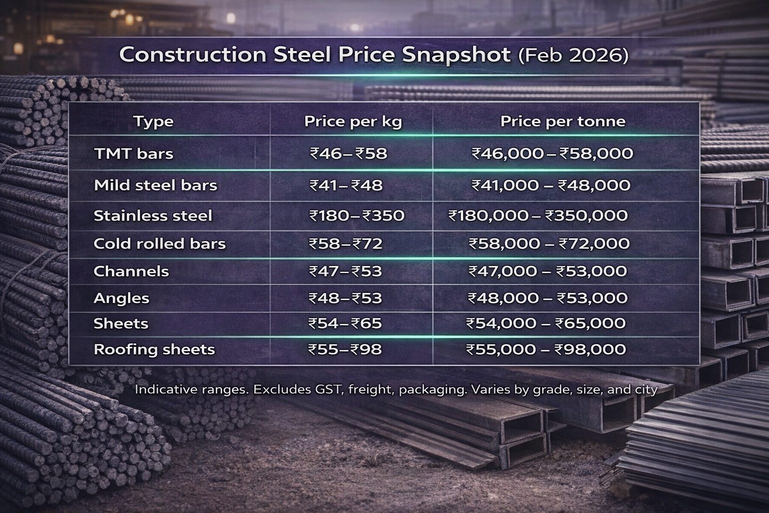 | Steel Channels | ₹47 – ₹53 | ₹47,000 – ₹53,000 |