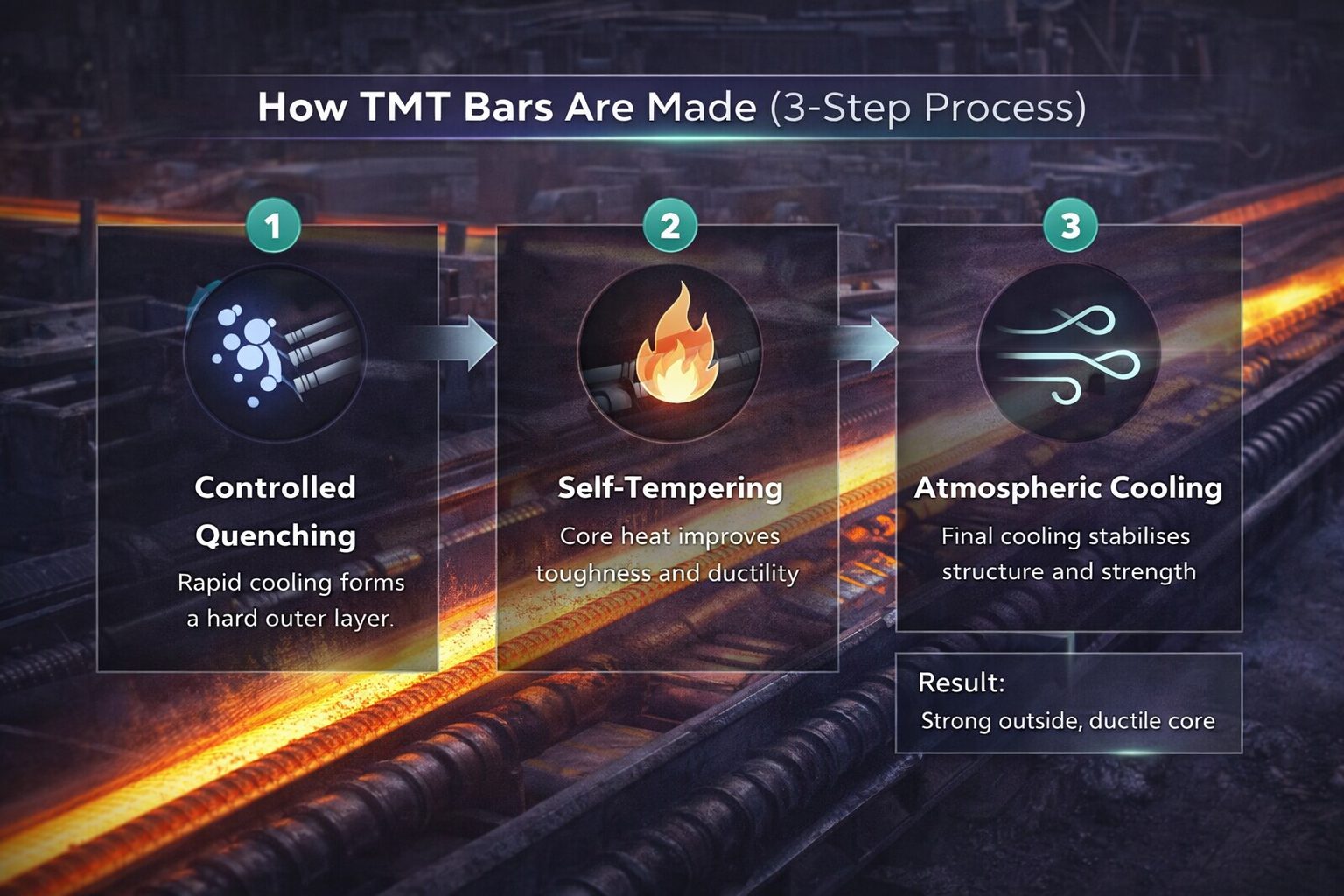 In the next section, we’ll understand the manufacturing process of TMT bars and their suitability for home construction.