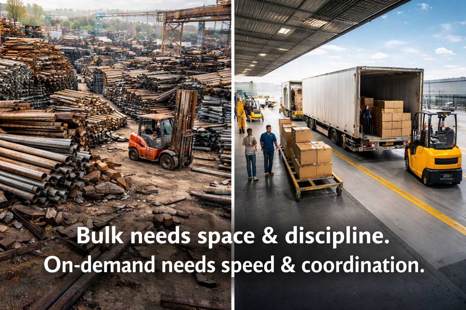 Bulk vs on demand steel buying is not a theory topic for MSMEs. It decides whether projects move smoothly, whether bank limits stay manageable, and whether stockyards remain usable. A cheap-looking rate can still hurt if it locks cash or clogs space. A flexible model can still fail if suppliers or transporters cannot support short notice orders.