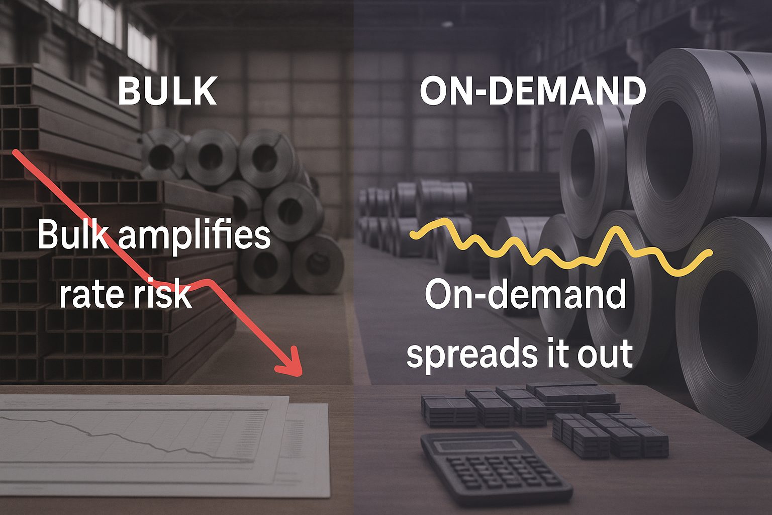 The debate on bulk vs on demand steel buying is often reduced to a rate comparison. Bulk looks cheaper per tonne, on demand looks flexible. In practice, the choice affects working capital, storage, production planning, tender performance, even the ability to accept or reject risky orders.