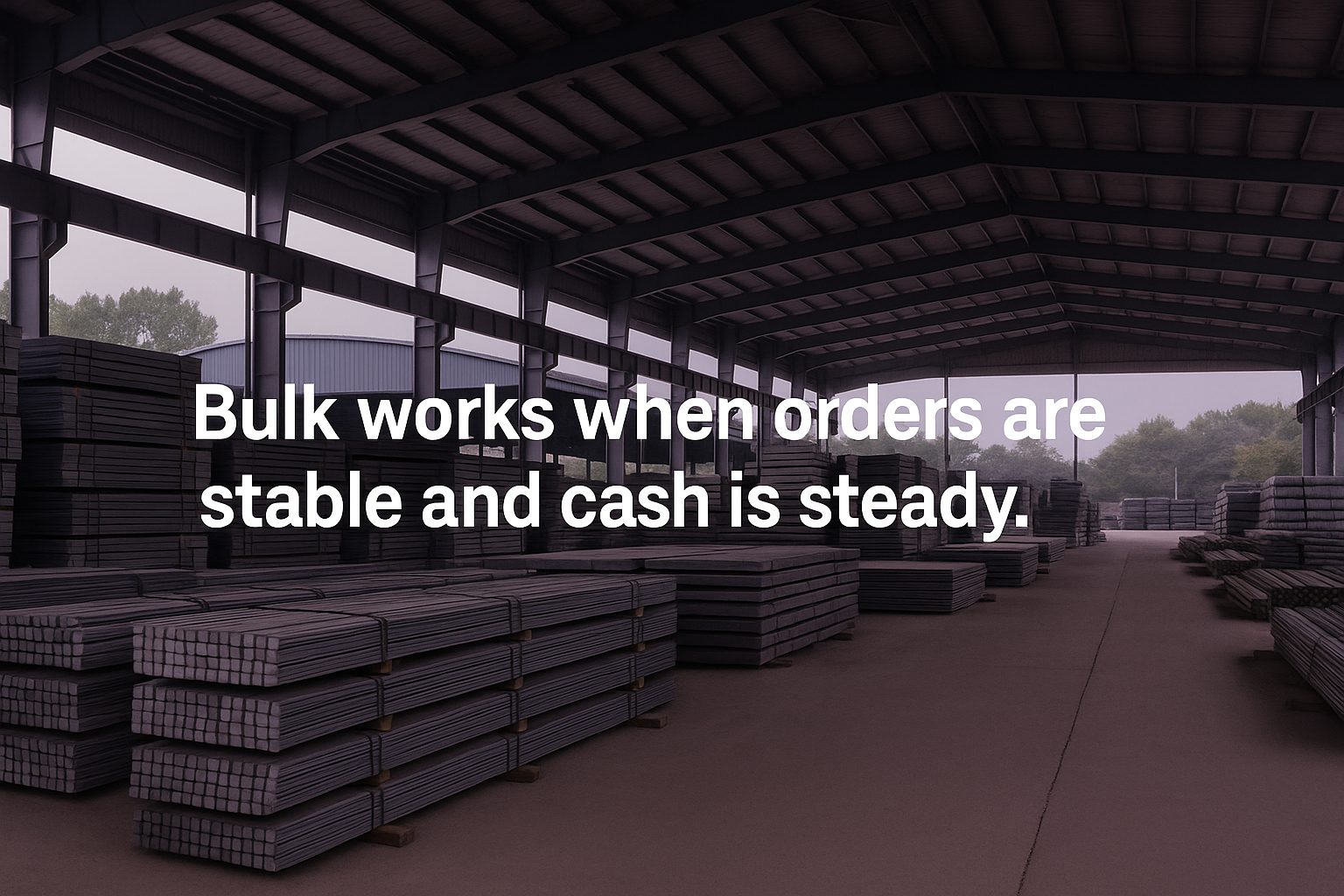 Bulk steel purchase can be very effective when a few basic conditions hold true. The work pipeline is clear, finance is reasonably stable, and specifications do not change every few weeks. In such cases, bulk vs on demand steel buying tilts towards bulk.