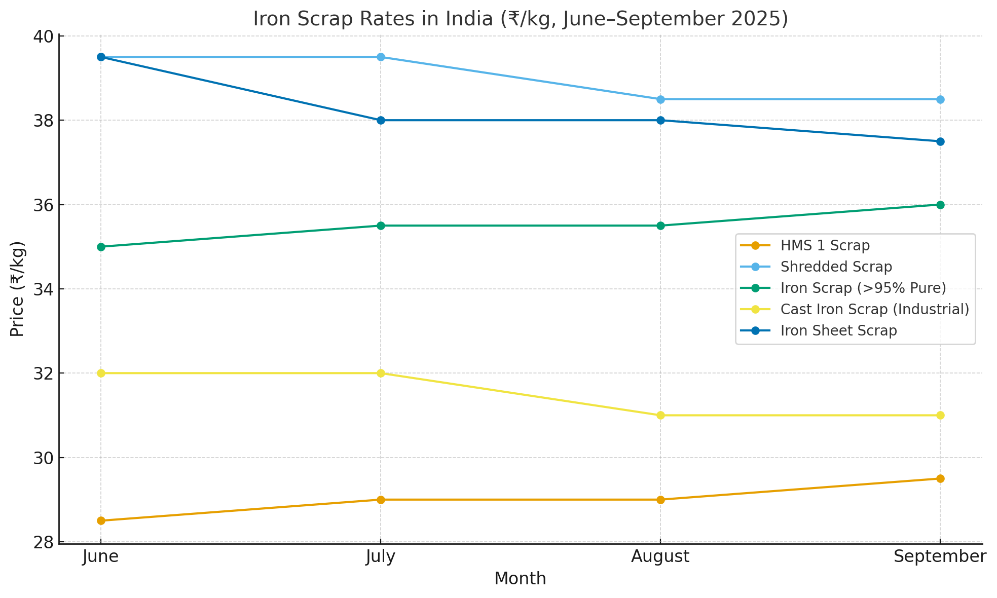 Scrap Type | July 2025 Price (₹/kg) | August 2025 Price (₹/kg) | September 2025 Price (₹/kg) |