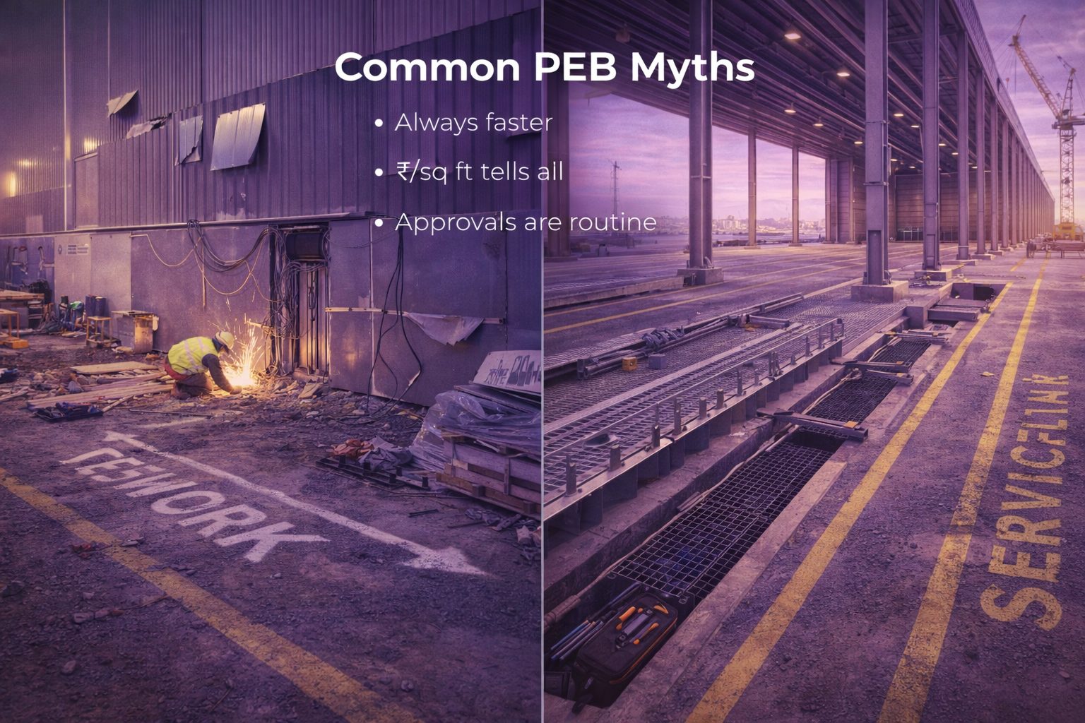 Many PEB projects face challenges not because of technical limitations, but because of assumptions made at the start. These misconceptions often sound logical during procurement but break down once approvals, fabrication, and erection begin. Clearing them early helps buyers set more realistic expectations.