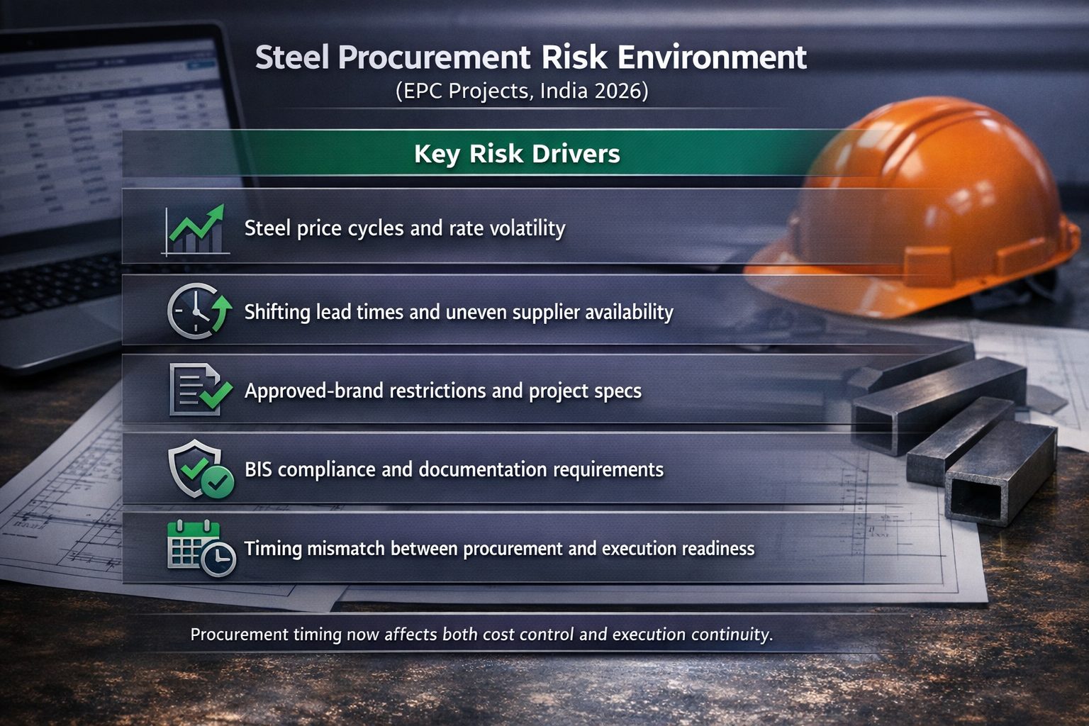 - In real procurement cycles, timing discipline protects margin more effectively than chasing small rate differences. Steel procurement in EPC projects requires coordination between planning, site, and finance teams.