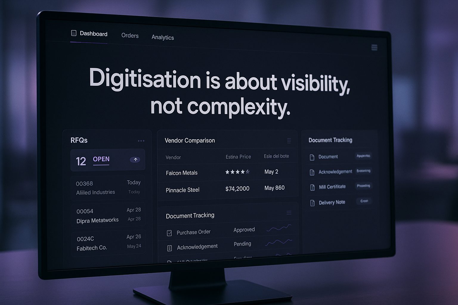 Digital platforms for steel buying work best when kept light. The goal is not heavy ERP adoption. The goal is visibility.