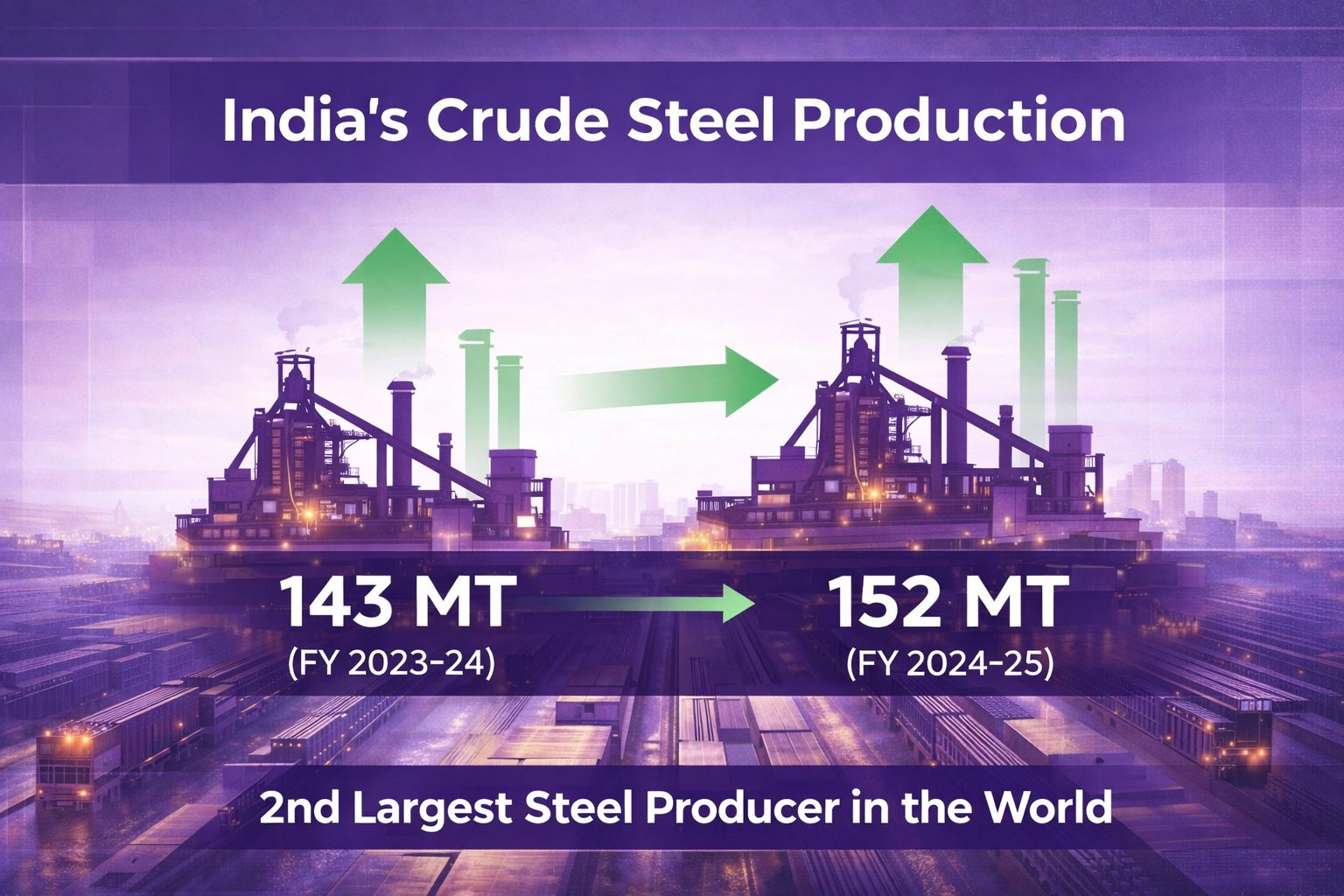 India’s crude steel production reached approximately 152 million tonnes (MT), marking a significant increase from 143 MT in the previous fiscal year (2023-24). With almost 152 MT production in 2025 (Source: IBEF), India remains the world’s second largest producer of crude steel globally. And with the new direction, there’s likely to be an increase in the domestic demand for steel.