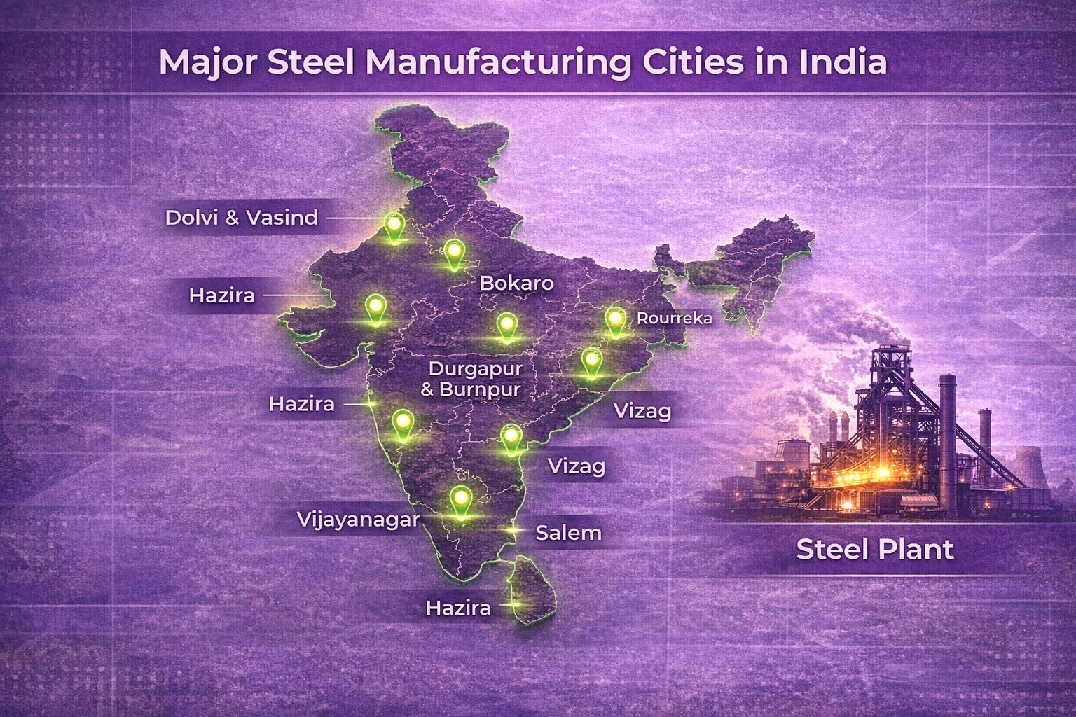The top 10 steel cities in India (in no specific order) are: