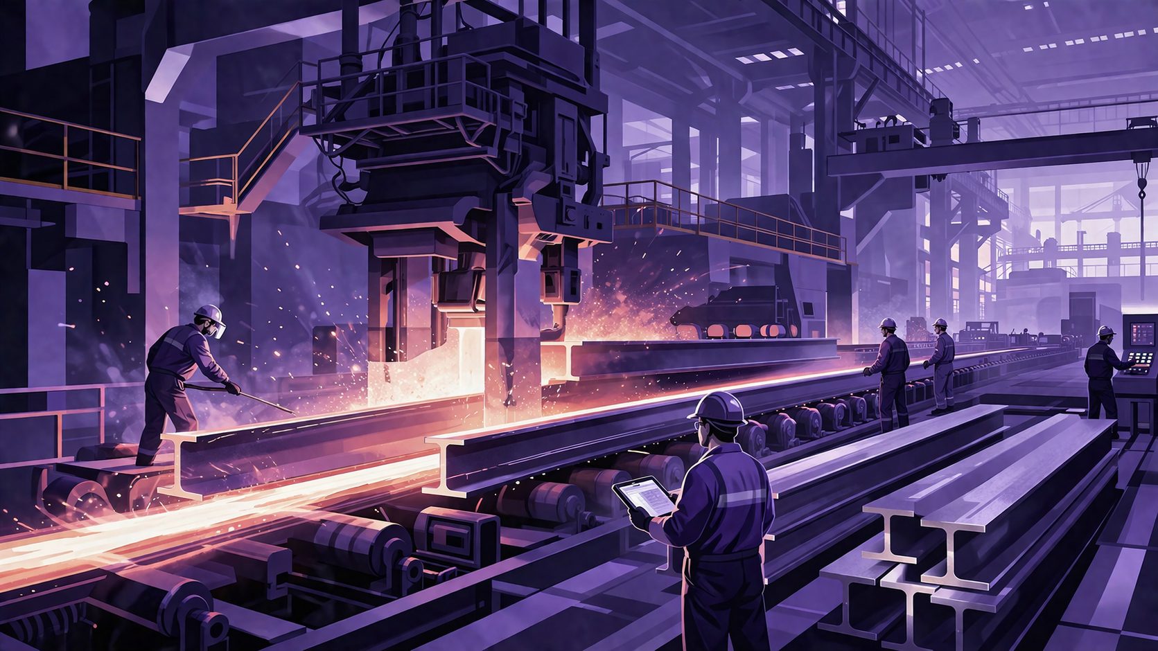 - Hot rolling: Steel is passed through rollers at high temperatures to form standard beam shapes with precision.