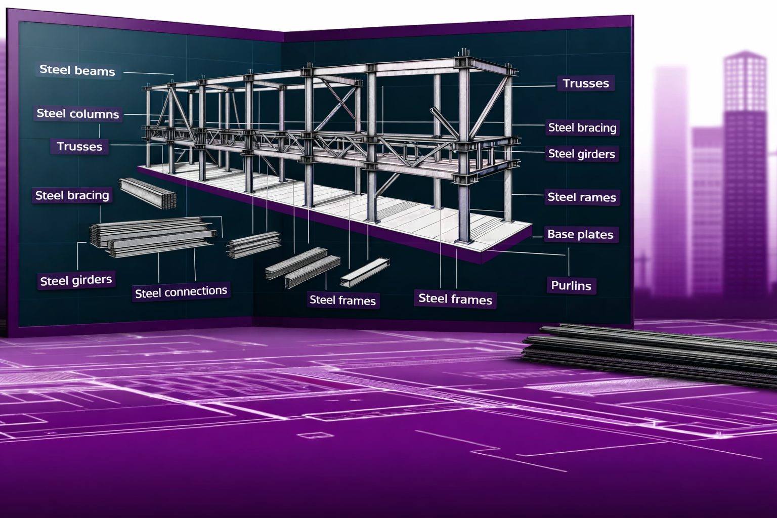 Key components of steel structure design include several interconnected elements that work together to ensure strength, stability, and load distribution. Understanding these components of steel structure systems helps in better planning and execution.