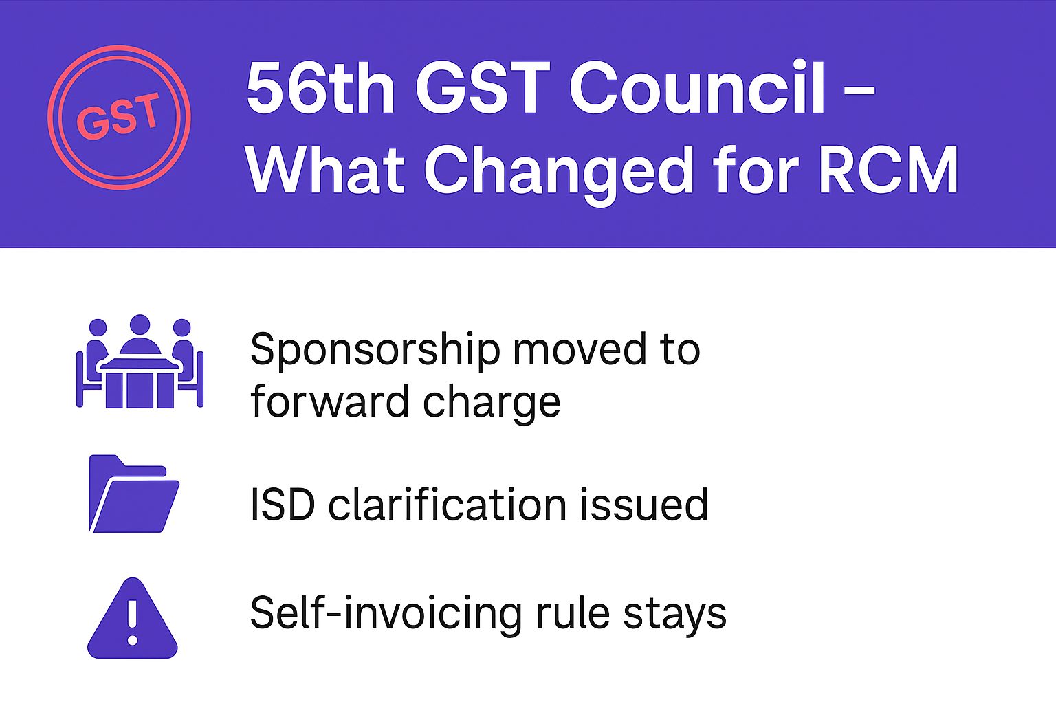 The big one this year is sponsorship services. They’ve moved out of reverse charge and are now taxed under forward charge. So, if you’re paying for event sponsorships or brand tie-ups, make sure the vendor issues a GST invoice. Also, there’s a new clarification on how inter-state service credit should be distributed by ISDs. If your head office pays for a service used by branches, double-check how you’re billing that — it may still need RCM treatment depending on the setup.