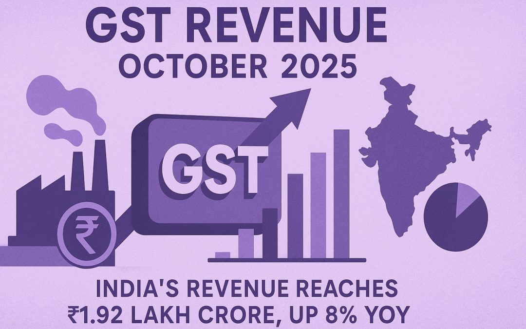 India’s Goods and Services Tax (GST) revenue reached ₹1.92 lakh crore in October 2025, up 8% year-on-year from ₹1.78 lakh crore in October 2024. However, it was slightly lower than September 2025’s record ₹1.95 lakh crore, showing a modest month-on-month dip. The data suggests that while overall growth remains solid, collections have stabilised after the festive surge.