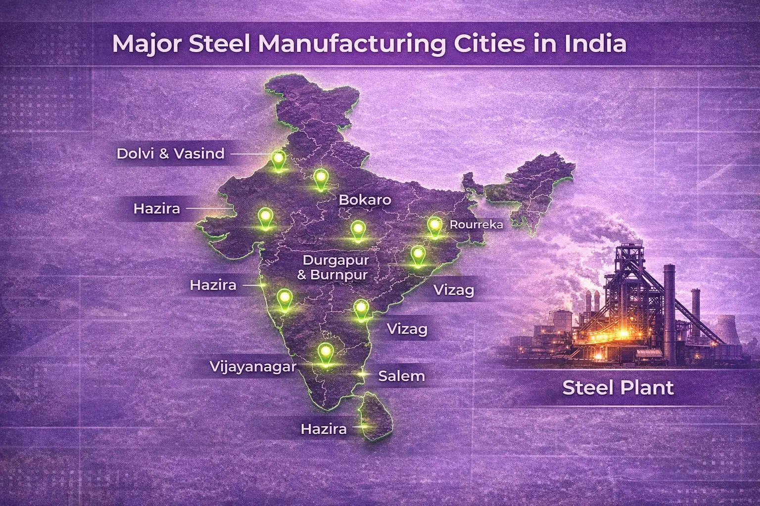 Odisha, Chhattisgarh, Jharkhand, West Bengal, Karnataka, Andhra Pradesh, Tamil Nadu, Maharashtra, and Uttar Pradesh, as such are the primary states for steel manufacturing and production.